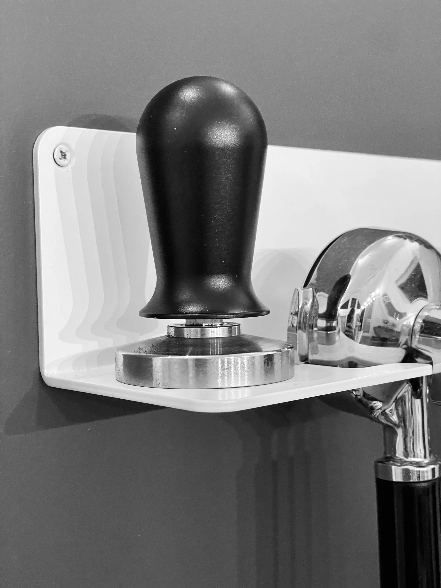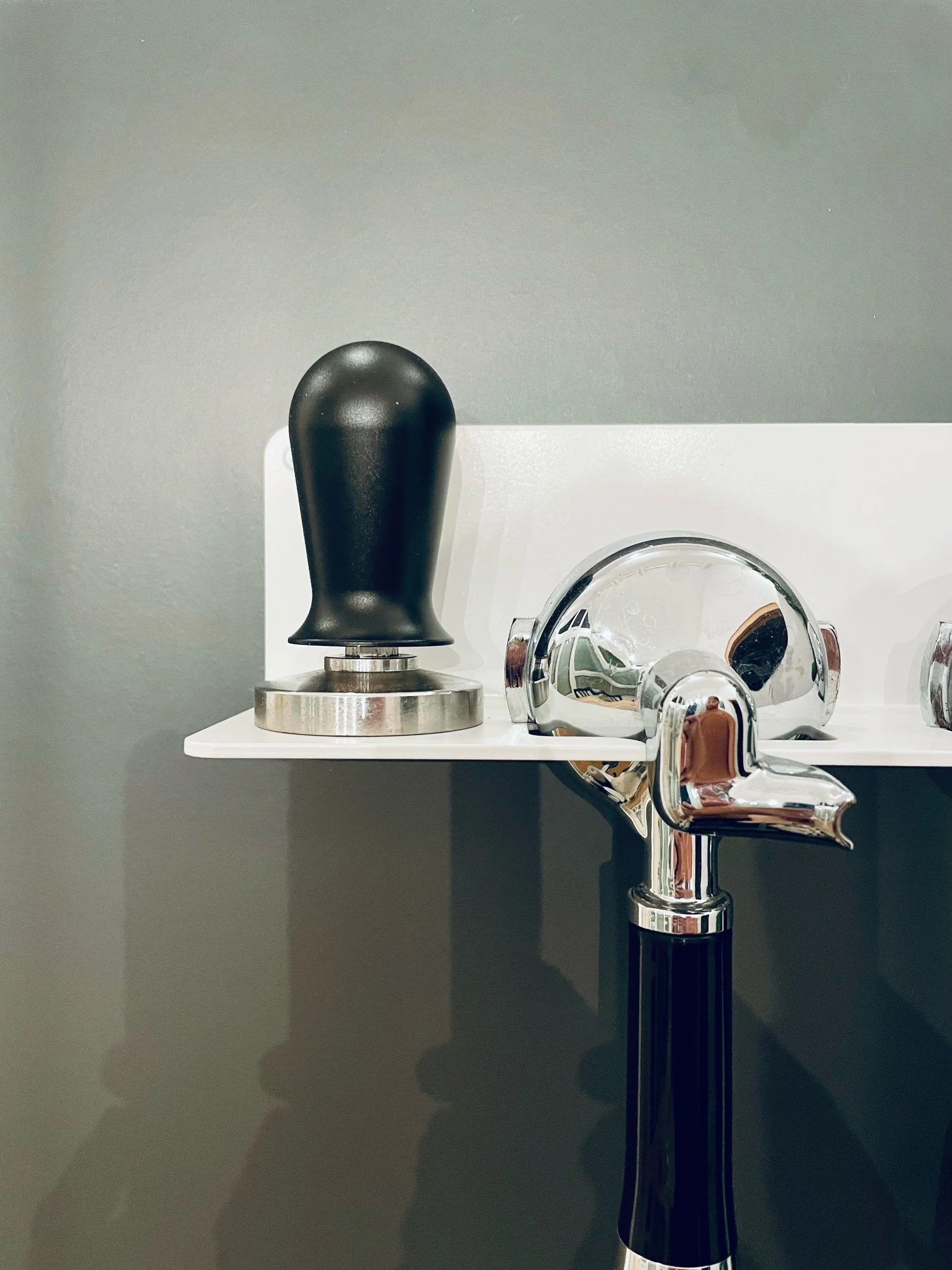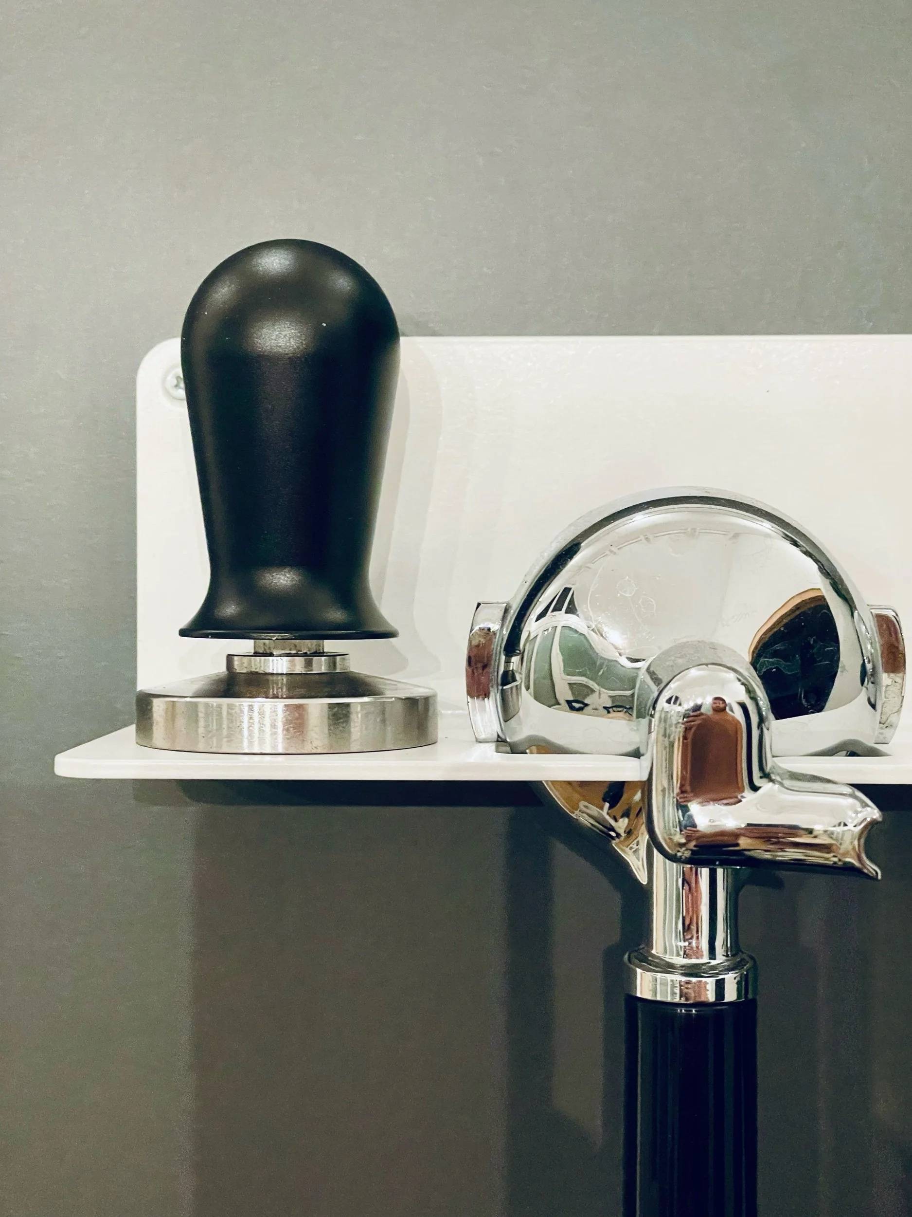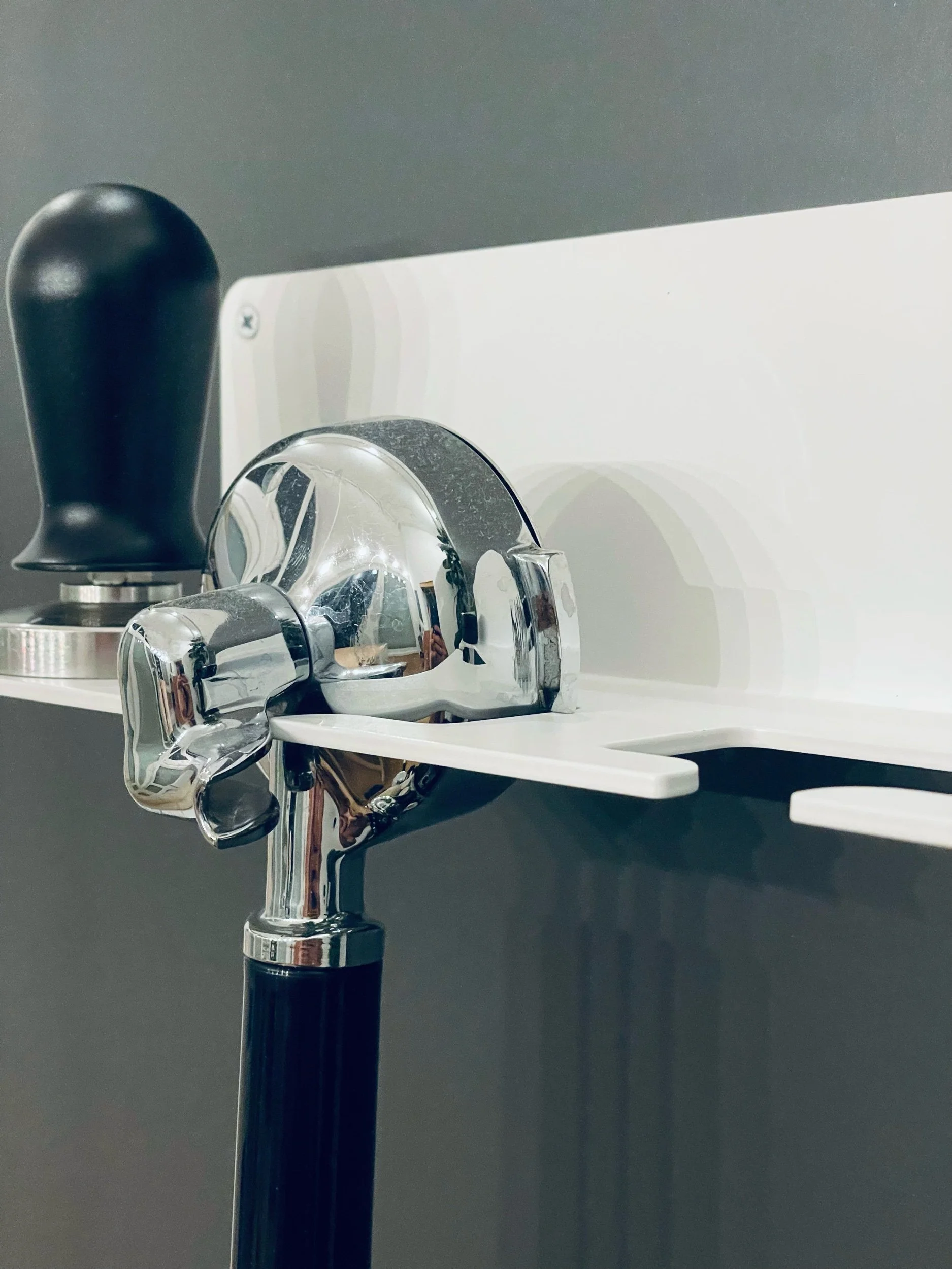 Unsere Siebträgerhalter bieten genug Platz für deine E61-Siebträger, deinen Tamper, Leveller und sogar deine Reinigungsbürste findet Platz. Bring Ordnung in deine Kaffeebar und organisiere dich neu.